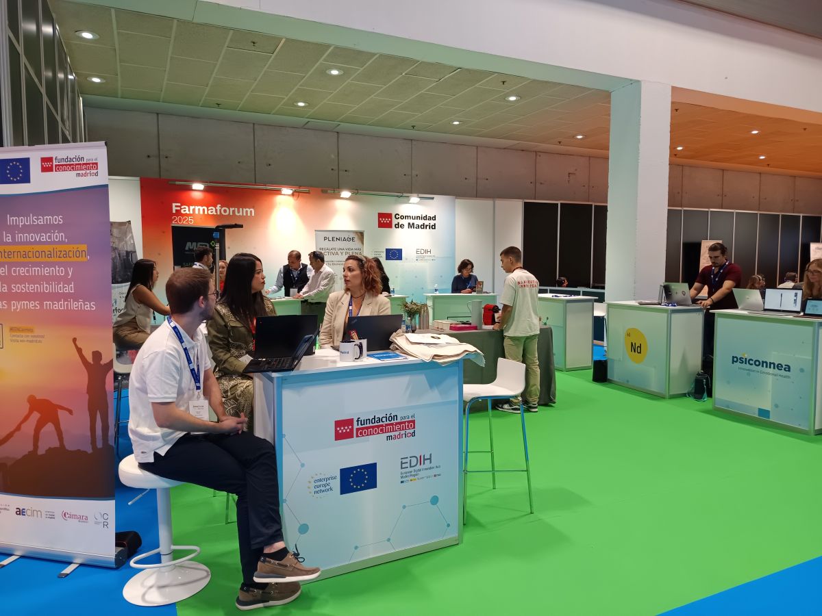 Durante la feria, la EEN Madrid contó con presencia en el stand de la Comunidad de Madrid, gracias a su coordinadora, la Fundación para el Conocimiento madri+d. En este espacio, que compartimos con nuestros compañeros del EDIH Madrid Region, participaron las empresas Distripha, 60Nd, Psiconnea, Counterfog, EB2, Safivita, Medical Flowers Development y Veos Pharmaceuticals, facilitando su visibilidad internacional y oportunidades de conexión con potenciales inversores, socios y clientes.
