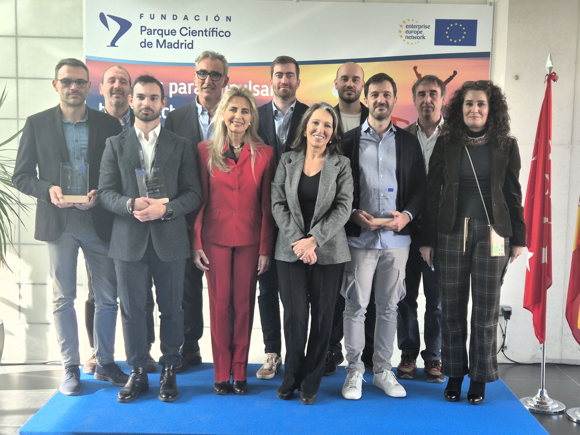 Los directores ejecutivos de las cuatro empresas han recibido los premios de manos de la directora general del PCM, Marta del Castillo Vázquez, y de la responsable de relaciones institucionales de EIT Health Spain, Ángeles Barrios. Del Castillo ha subrayado: «Desde el Parque Científico de Madrid y nuestro socio EIT Health Spain celebramos la III edición de los premios Health to Market reconociendo cuatro startups innovadoras en salud y biomedicina que ofrecen soluciones disruptivas a problemas complejos y ejemplifican la transferencia de conocimiento a la sociedad. Con este galardón facilitamos el lanzamiento y penetración de sus productos en el mercado a escala nacional e internacional».